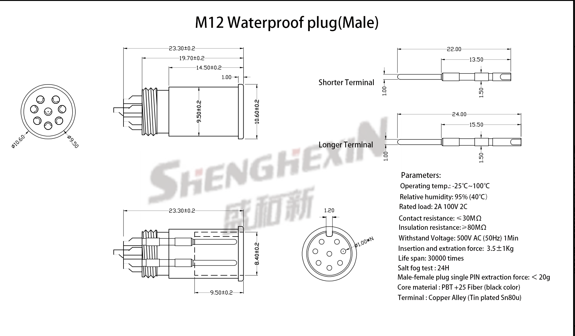 您的位置:首 页 > 产品展示 > 防水线束 > 防水3,5,6,7,8针M12 PBT组装编码插头公母螺钉锁紧圆形淋浴连接器插头