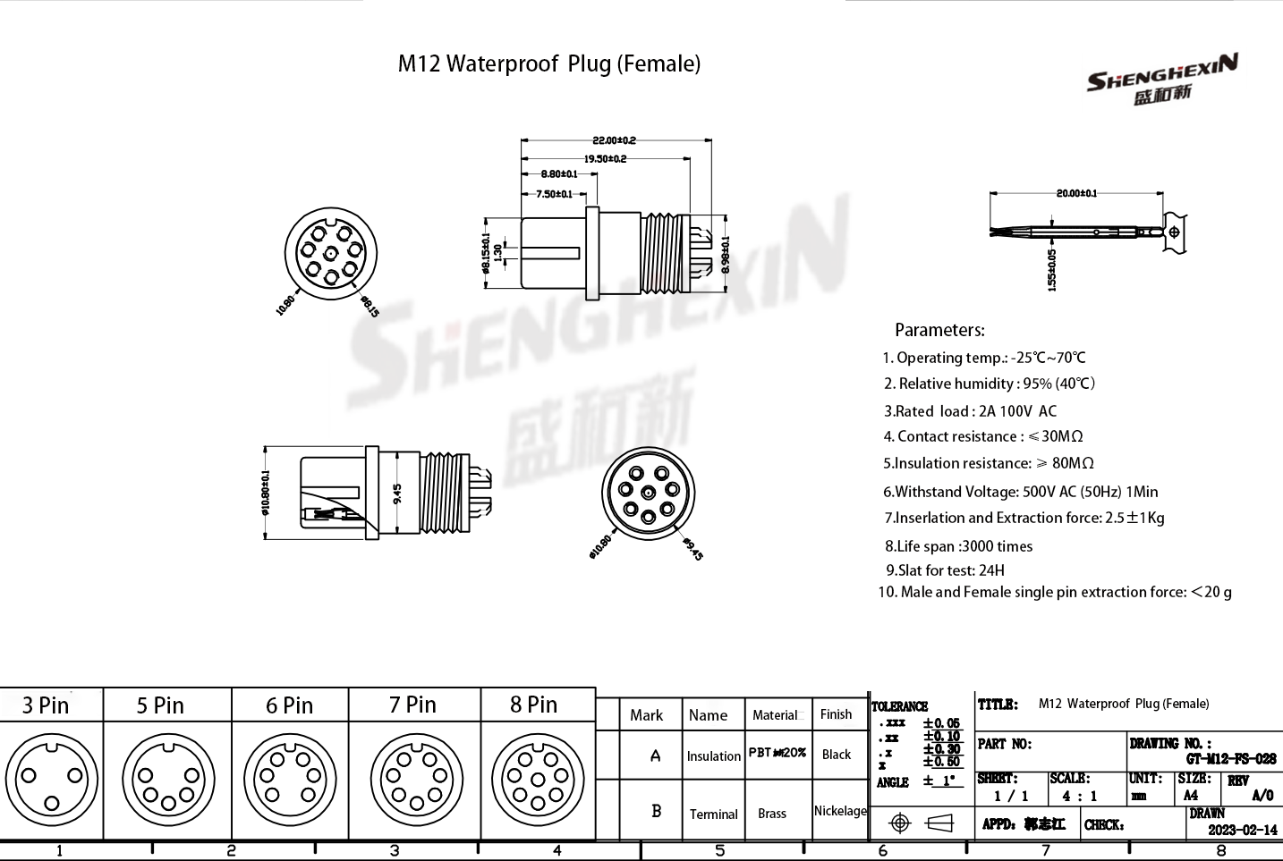 • 防水3,5,6,7,8针M12 PBT组装编码插头公母螺钉锁紧圆形淋浴连接器插头